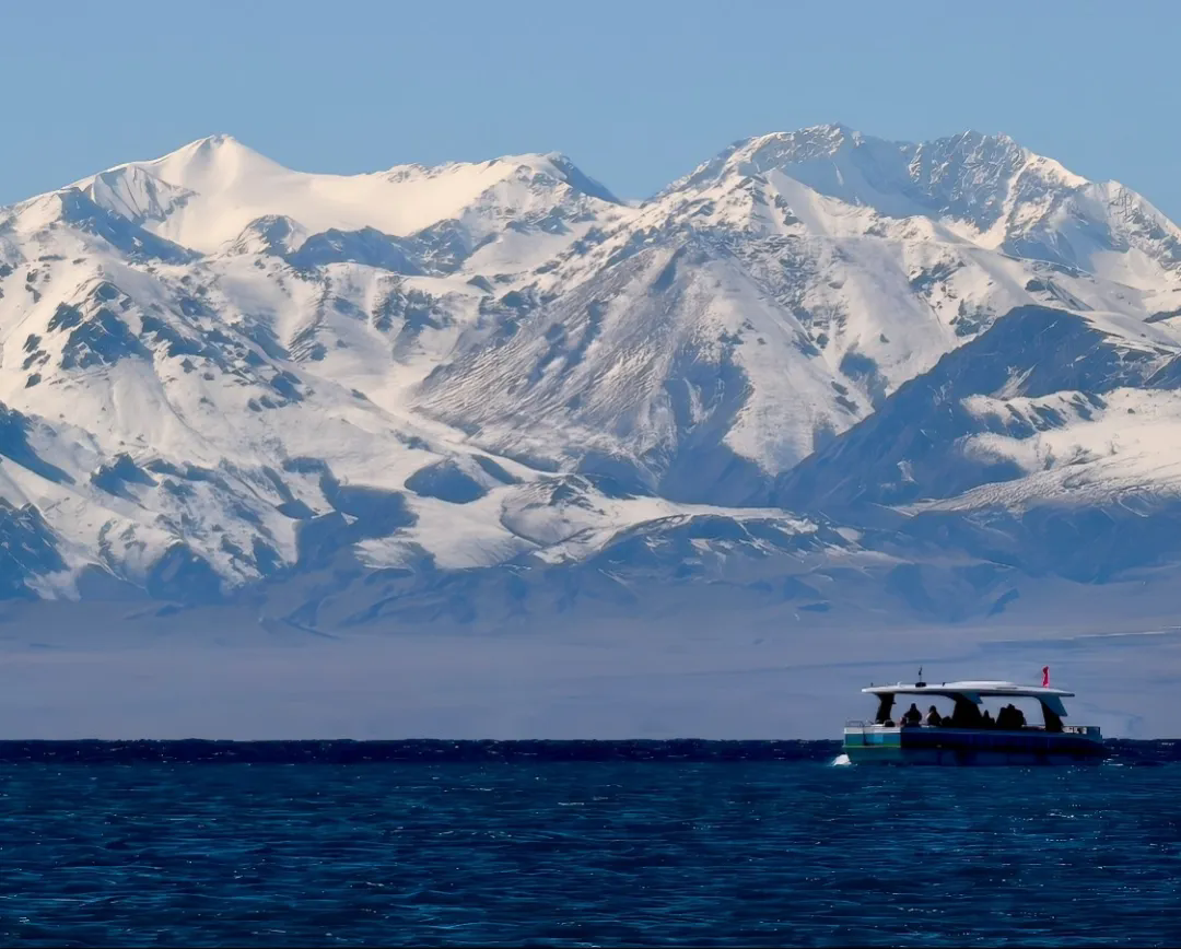我们坐船深入赛里木湖,零距离感受“大西洋最后一滴眼泪”的震撼。湖水清澈见底如一颗璀璨的蓝宝石,镶嵌在天山山脉之间。远处的雪山与蓝天白云倒映在湖中,融为一体,分不清哪里是天,哪里是湖。在这里,时间仿佛慢了下来,每一刻都充满了浪漫与惬意。