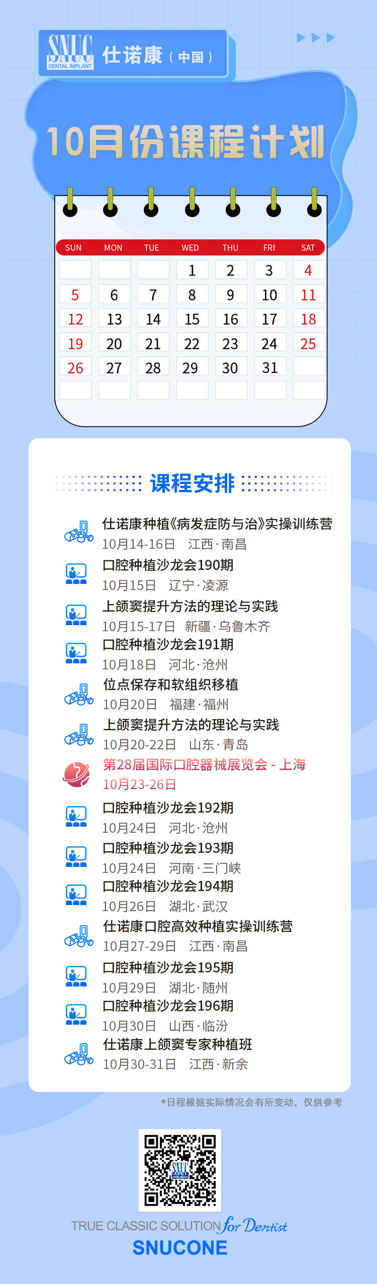 【课程计划】仕诺康丨10月份课程计划
