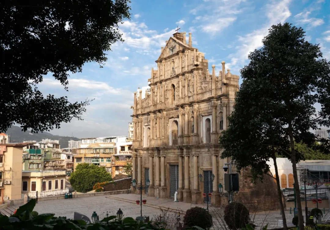 午后暖阳为斑驳的大三巴石墙上镀了金边,历经岁月的纹路在光影中格外清晰,仿佛镶嵌在澳门老城中的“时空裂缝”。独特的巴洛克风格设计与传统的中式建筑结构巧妙融合,将东西方文化凝于一体,创造出令人惊叹的艺术奇迹。