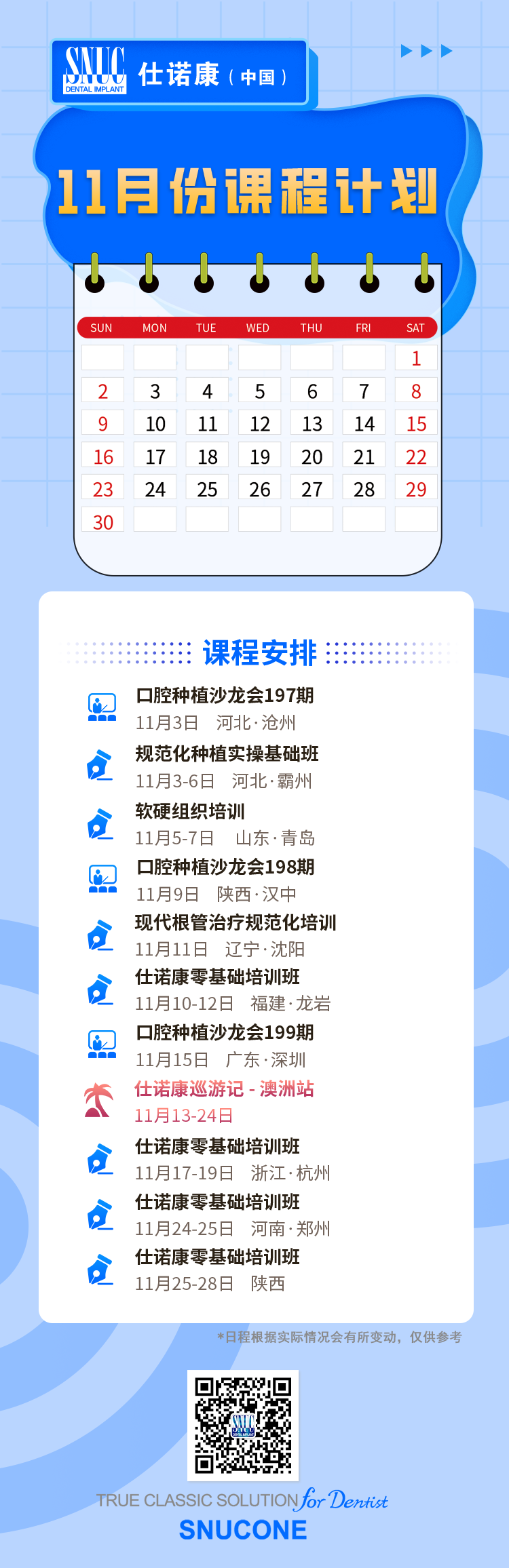 【课程计划】仕诺康丨11月份课程计划